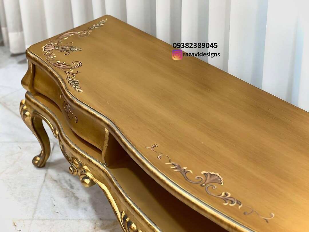 جنس میز تلویزیون چوبی مدرن از نوع چوب راش بوده و شما می توانید در کنار مبل کلاسیک فرانسوی باعت ایجاد هارمونی در منزل شوید.
