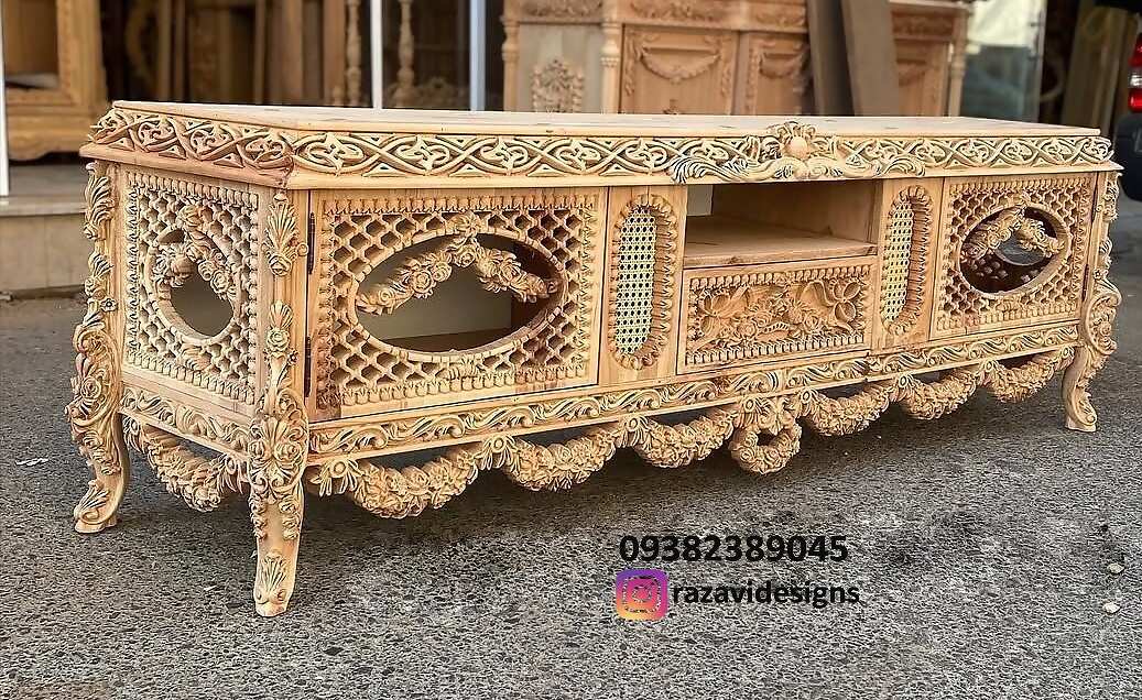 میز تلویزیون جدید مدل سزار – تولیدی رضوی تبریز جزئیات، قیمت و نحوه سفارش میز تلویزیون چوبی مدل سزار مدل