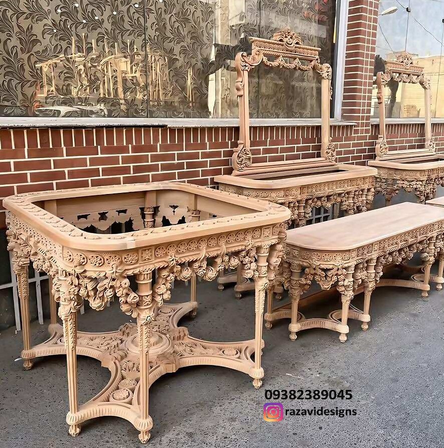 میز تلویزیون چوبی مدل رز گلد- تولیدی رضوی تبریز