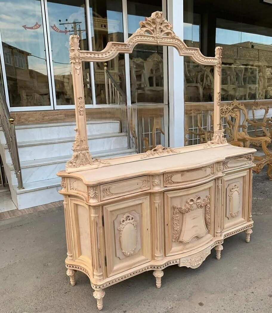 همچنین طبق درخواست مشتری، امکان اجرای ورق طلا، پتینه و سایر تکنیکهای هنری وجود دارد تا آینه کنسول شما ظاهری سلطنتی و فوقالعاده لاکچری به خود بگیرد.