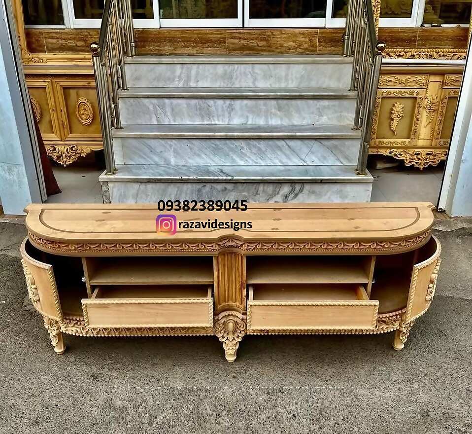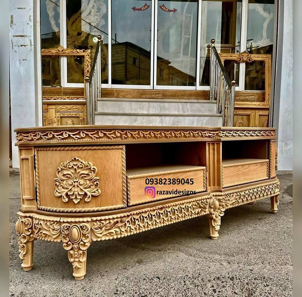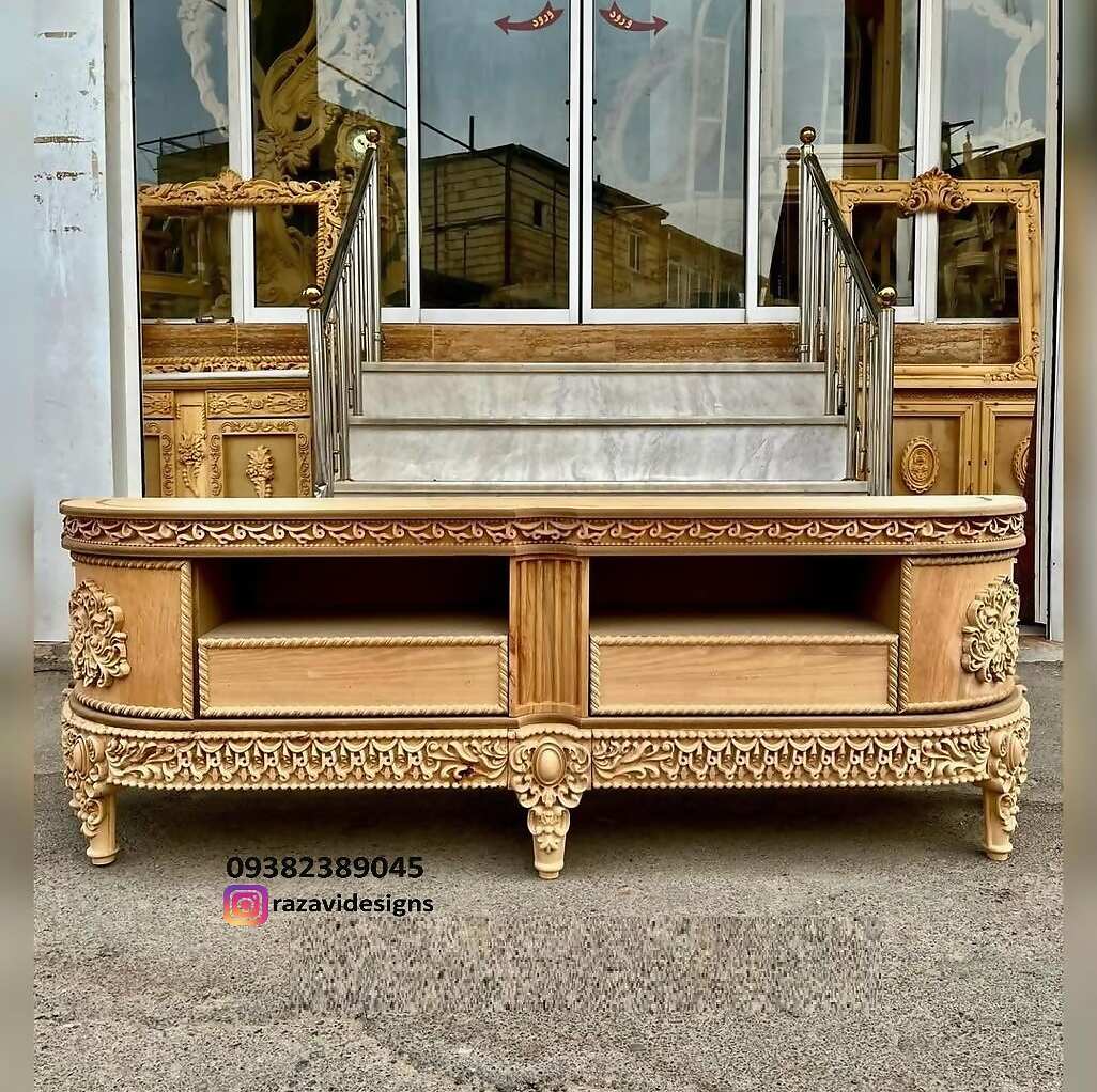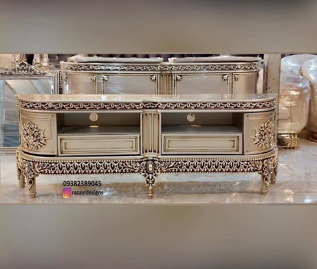 • امکان انجام ورق طلا و پتینه کاری برای این میز تلویزیون زیبا امکان پذیر می باشد.