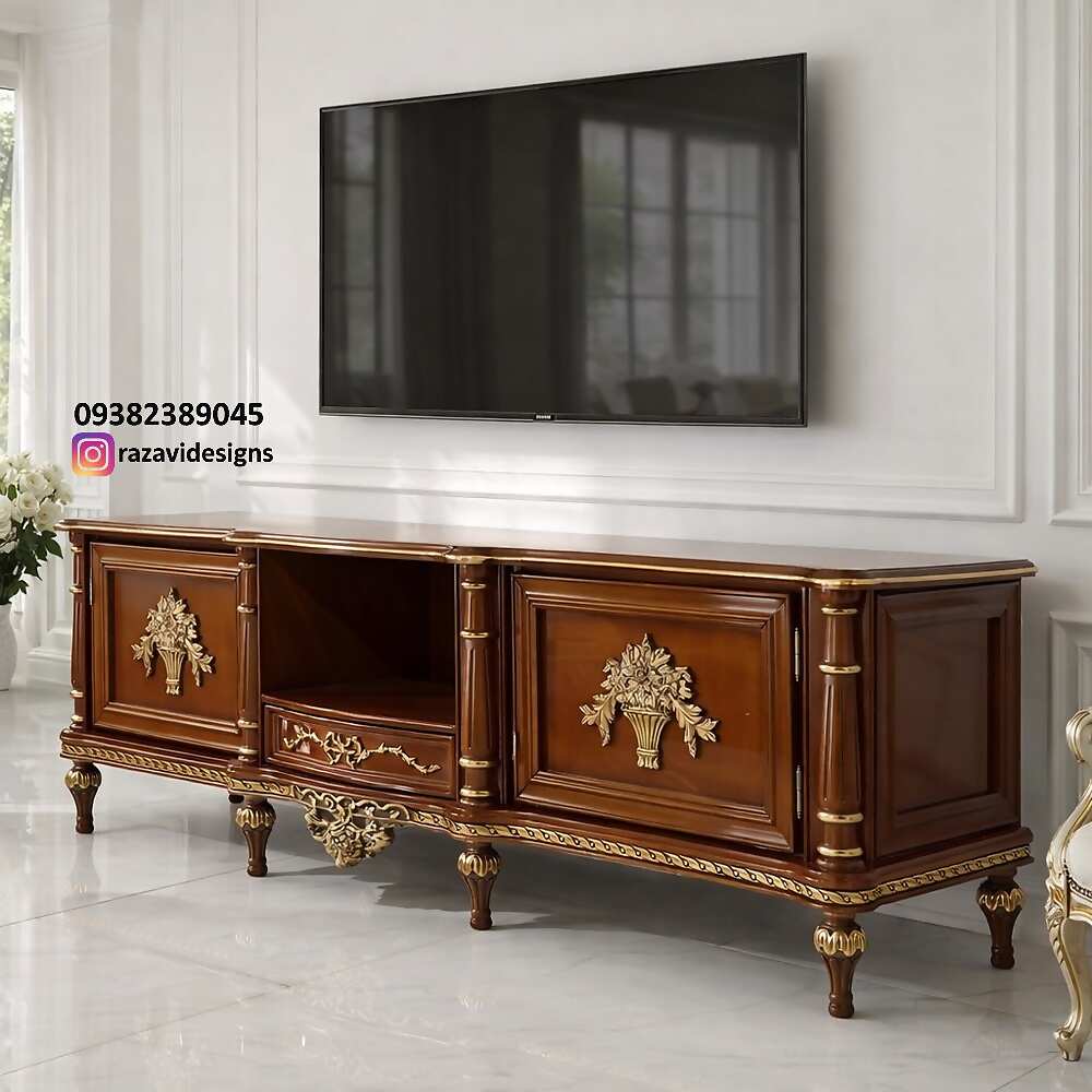 میتوانید در انتخاب رنگ چوب میز تلویزیون مخیر باشید و برای این مدل از میز تلویزیون ها متناسب با هر رنگی که در نظر دارید ثبت سفارش خود را انجام دهید می توانید با رنگ میز کنسول یا مبلمان سلطنتی یا مبل کلاسیک ست کنید.